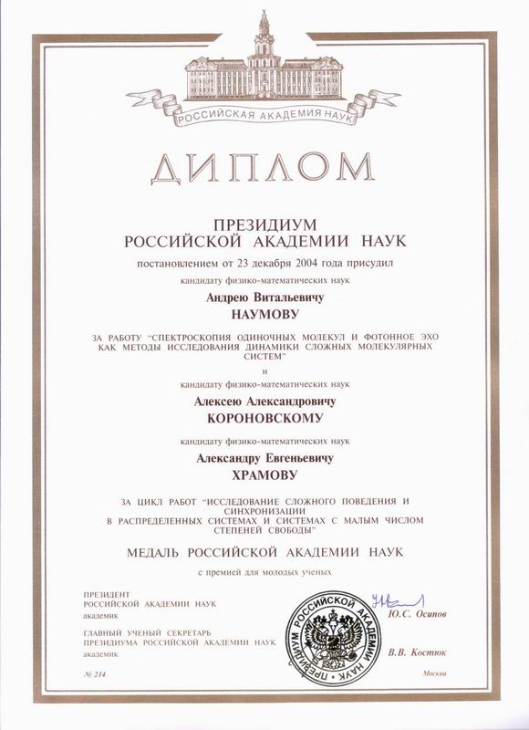 Presidium of Russian Academy of Sciences Young Scientists Award 2004 Ceremony